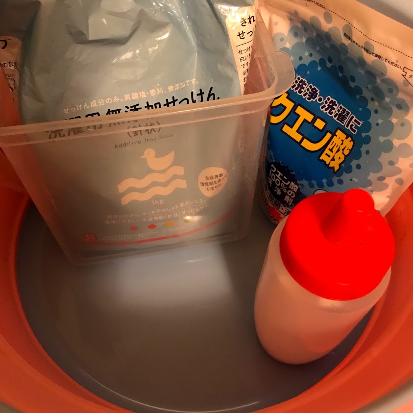 3回目で、入れたい人はクエン酸を小さじ1くらい入れるとしなやかに洗いあがります。