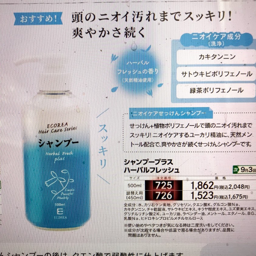 エコーレアの新しいシャンプー、ハーバルフレッシュ。