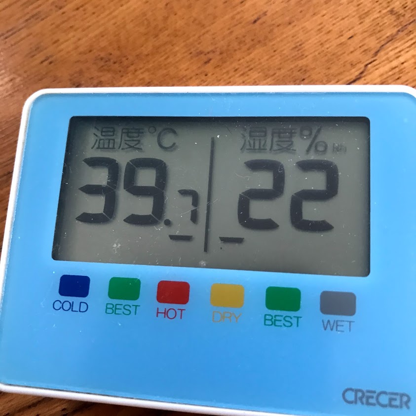 エアコンのリモコンが外の温度40度以上ですと言うので