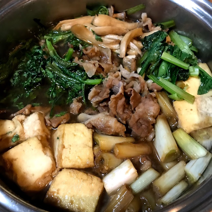 豆腐、長ねぎ、小松菜、エリンギ、春菊。