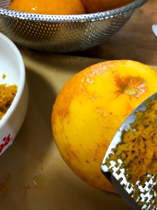 白いところをそぎ取る作り方もあるけど、 うちは表皮のオレンジ色のところを削り取ります。