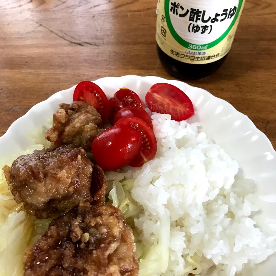 前日、デポーいたばしで買った鶏のから揚げのっけごはん。