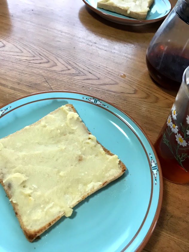 おやつに、カスタードクリームトースト、ポップコーン。