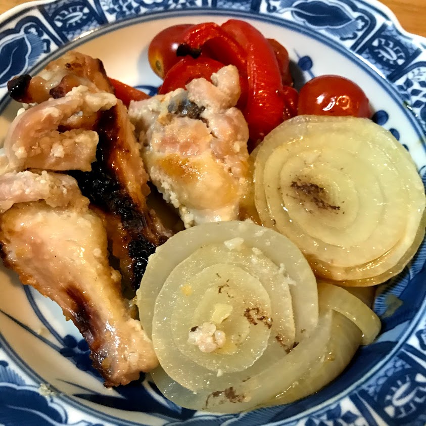 玉ねぎの輪切りをしいた魚焼きグリルで焼きました。