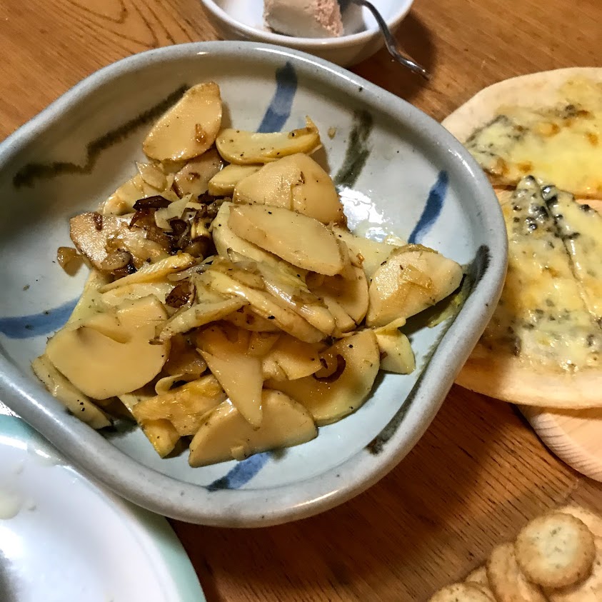 たけのこが届いたら必ず作る、にんにくオリーブオイル炒め。