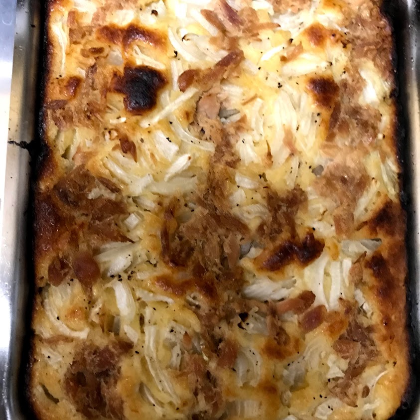 グリルで焼いたケークサレ、玉ねぎと油油漬け缶入り。