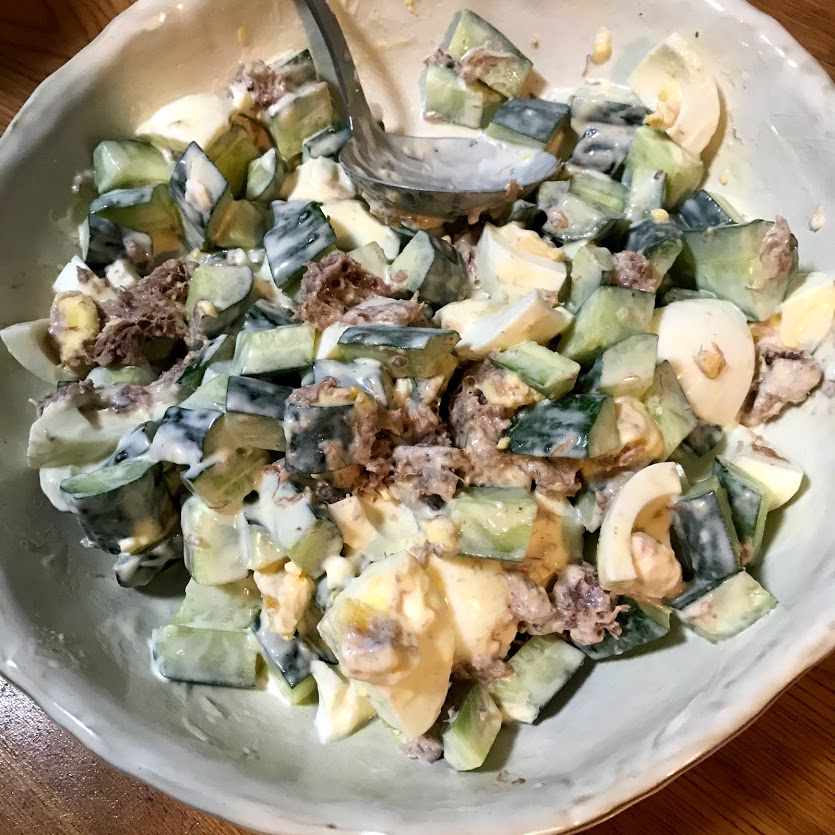 ゆで卵とコンビーフのマヨネーズサラダも作りました。