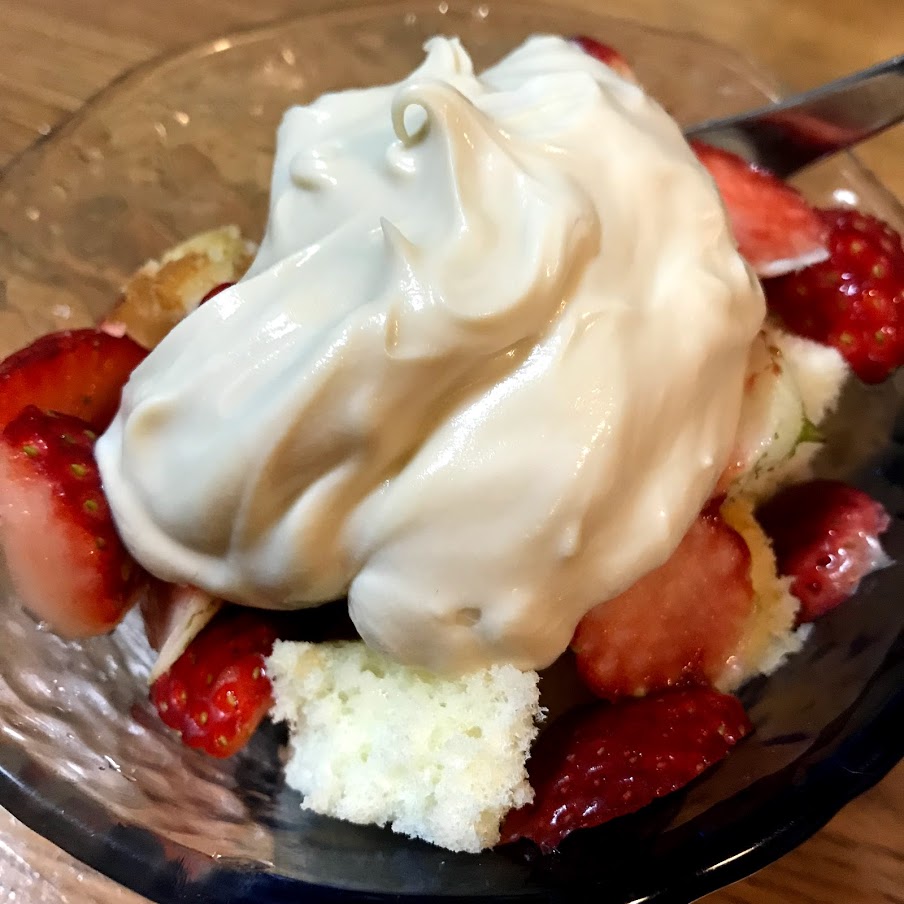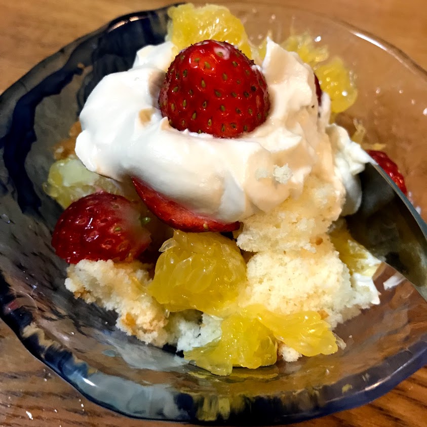 ので、食べたいだけケーキをちぎって 一人分のトライフルみたいにしてみました。