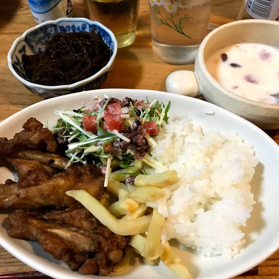 水菜、トマト、雑穀マリネにマヨネーズとヨーグルトドレッシング。