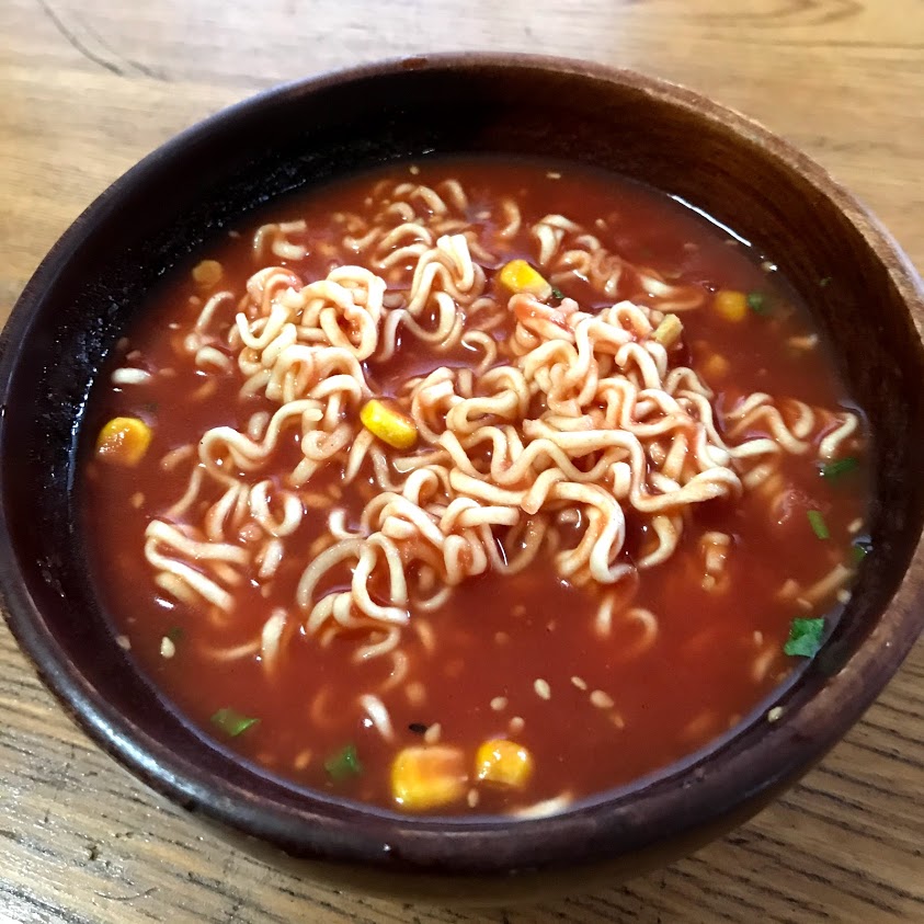 まずは、おわん麺タンメンをお湯+トマトジュースでトマトヌードル。