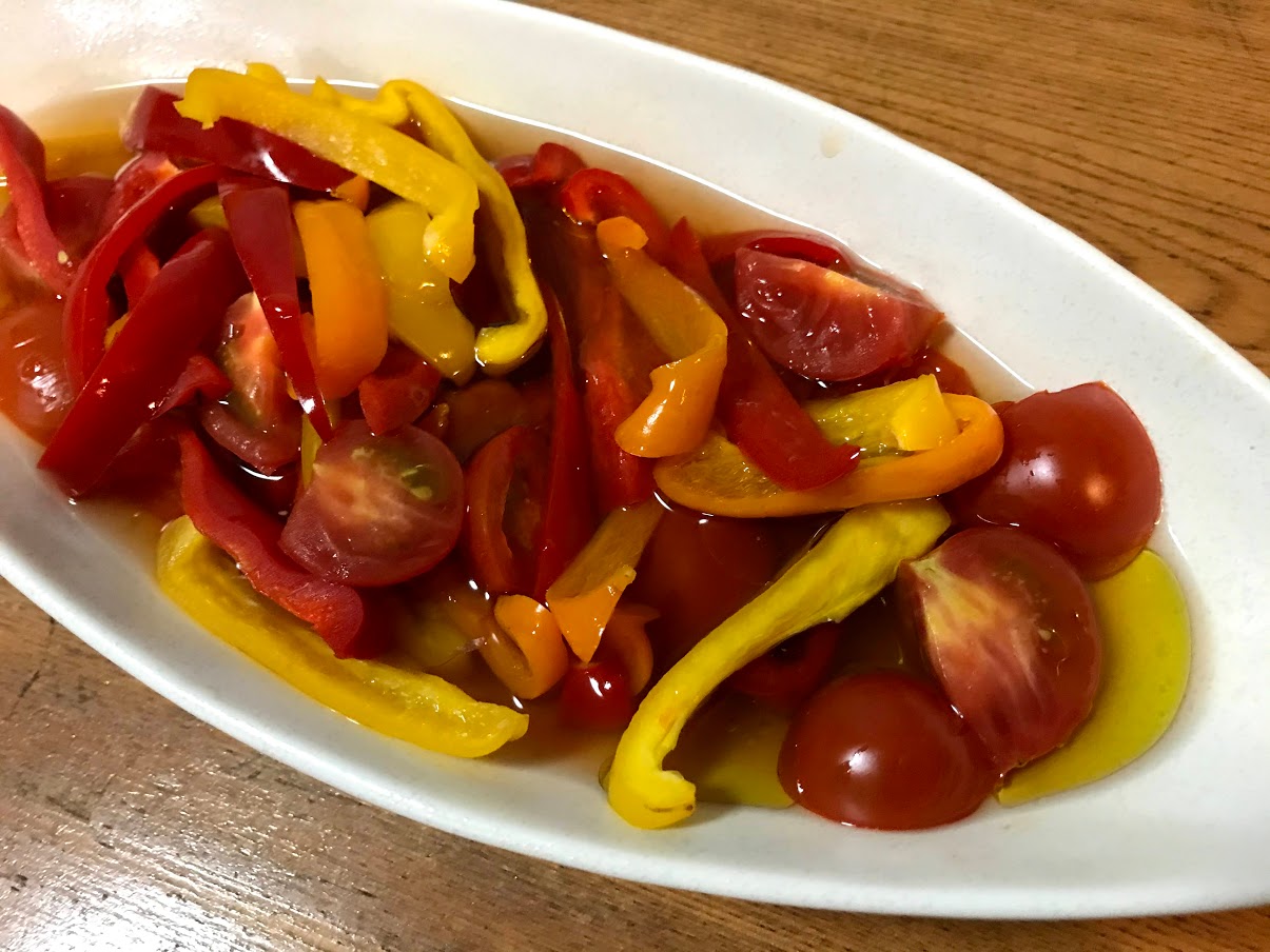 続いて半分に切った中玉トマトを入れぐるっとかき混ぜたらすぐに火を止め器に入れる。