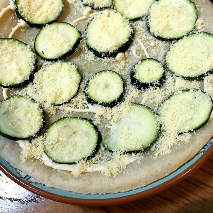 マヨネーズとズッキーニかかぶ、パウダーチーズ。