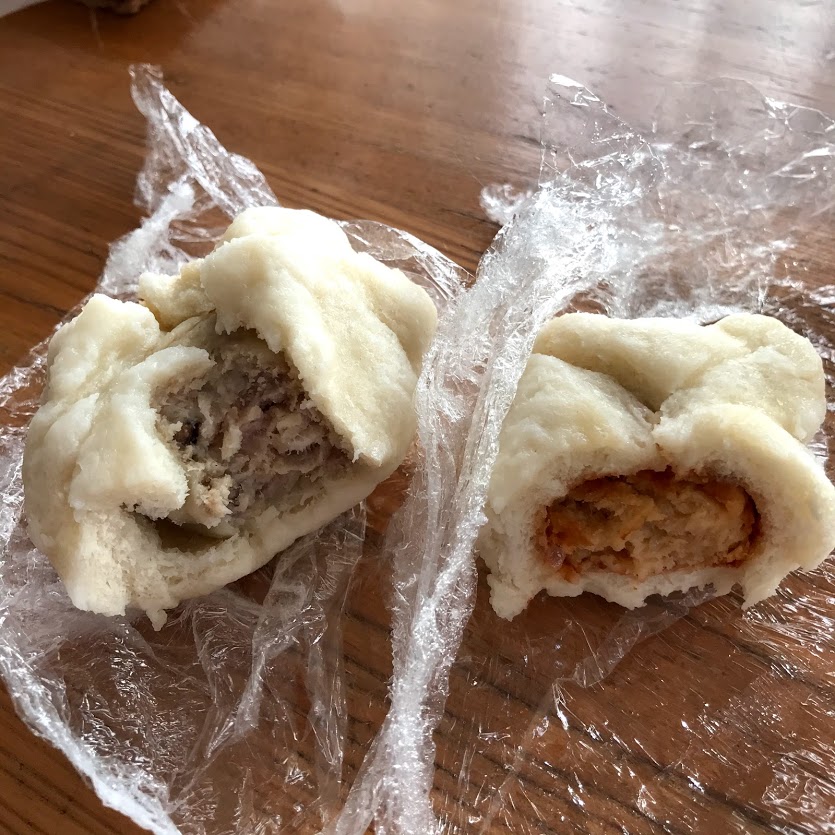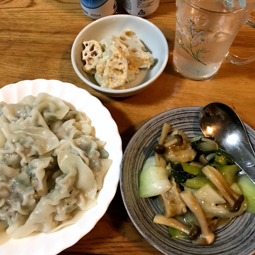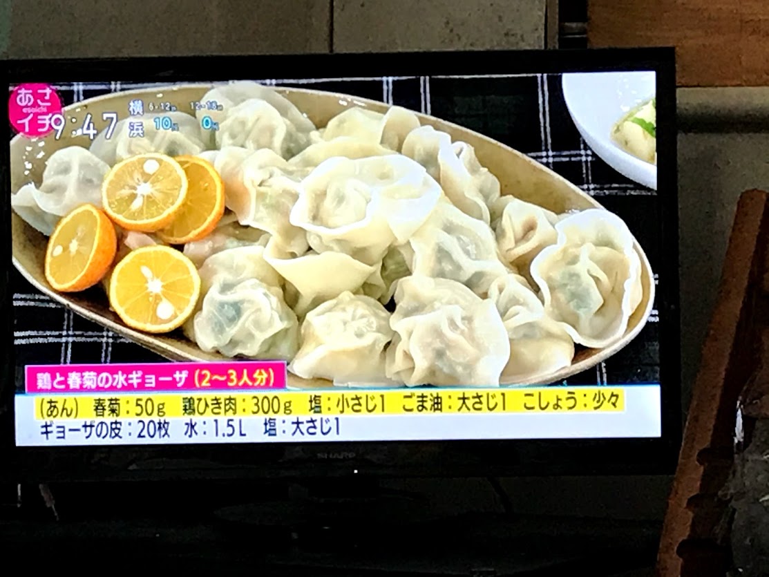 中身は親鶏ひき肉と春菊だけ。もっと春菊が入ってもいいかも。