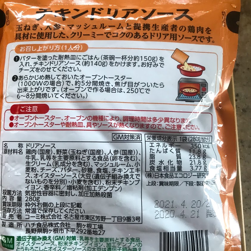 チキンドリアソースでかんたんドリア。