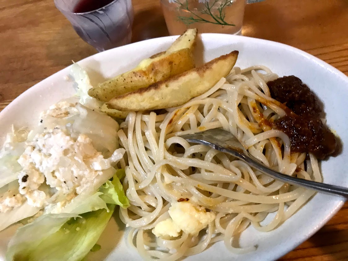 こちらのミートソースは麺の下によそうのですが、