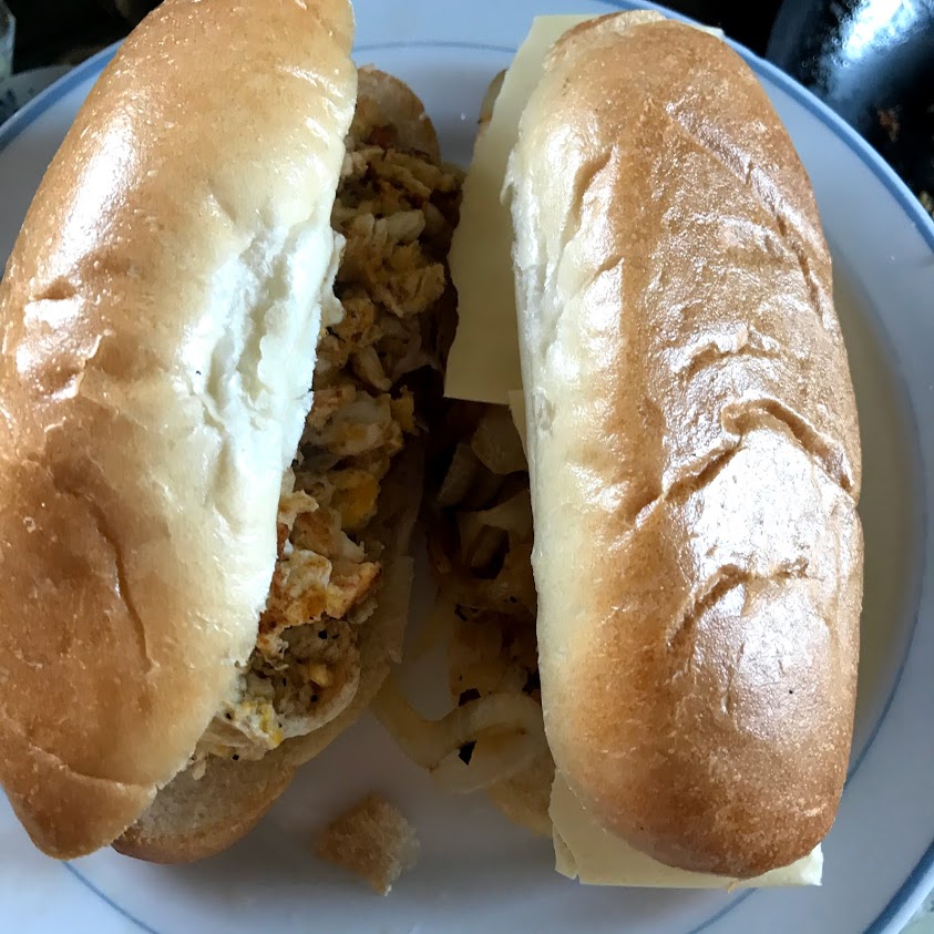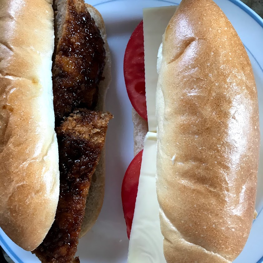 デポーいたばし名物メンチカツサンド、チーズとトマト。