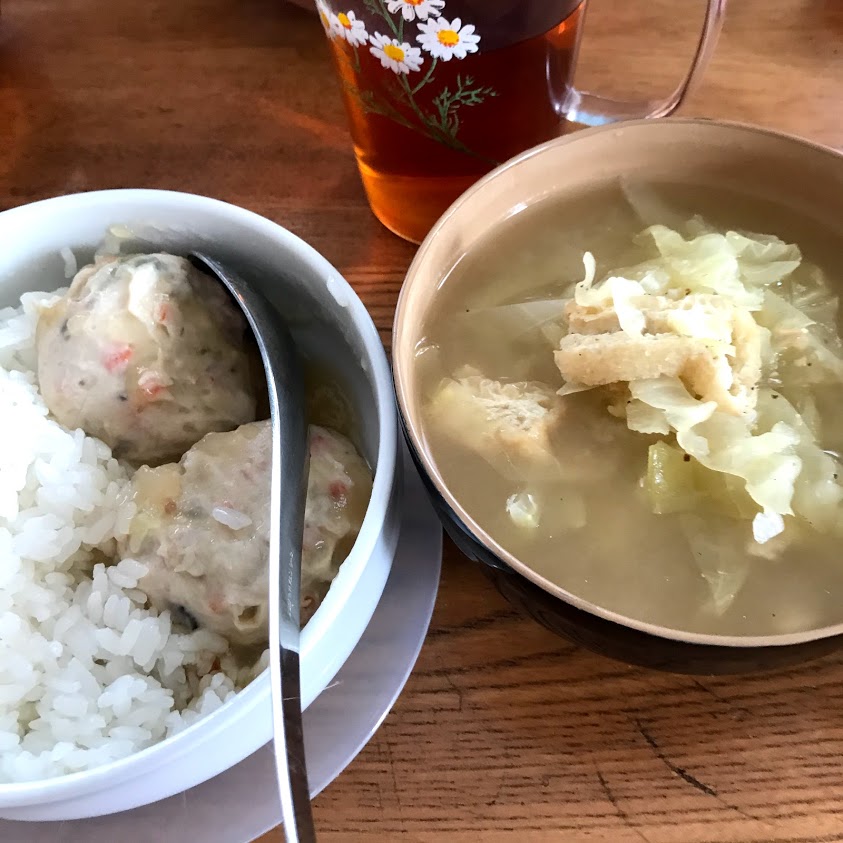 キャベツと油揚げの味噌汁。
