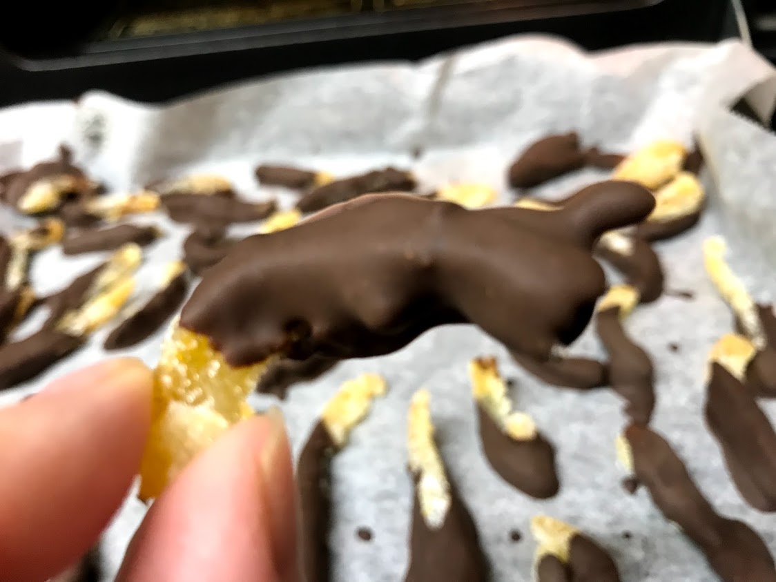 甘夏ピールにブラックチョコをつけました。
