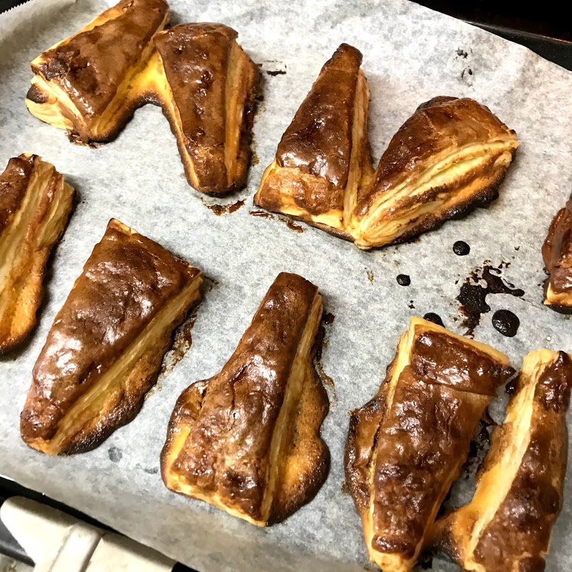 パイ生地の間に卵黄クリームをはさみ、