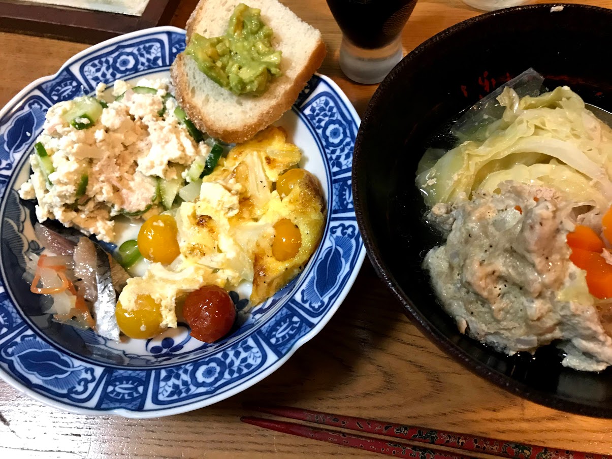 きゅうり、まぐろ油漬け缶、豆腐のサラダ。