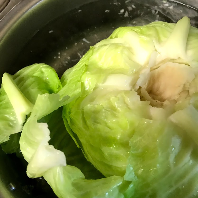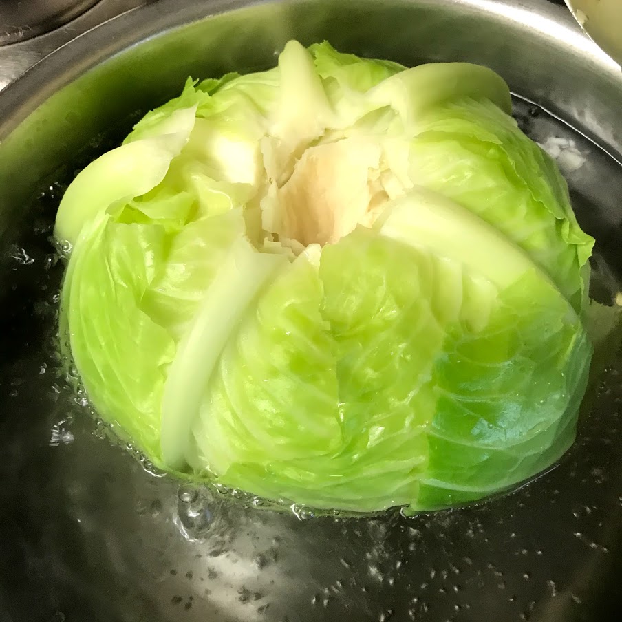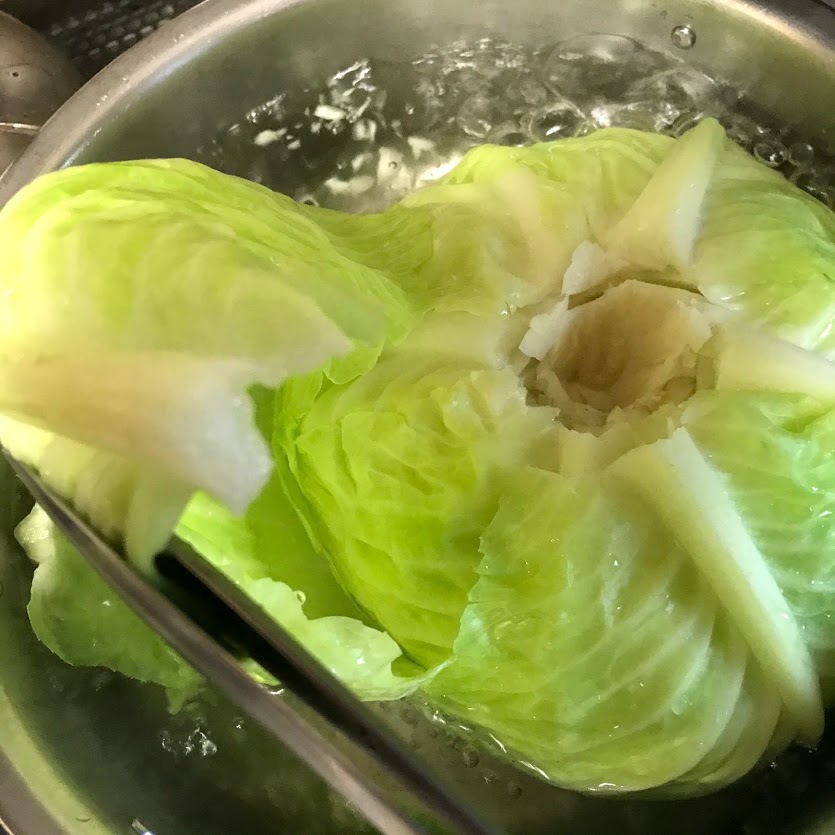 キャベツは芯のところに包丁を入れて丸ごとゆでると、