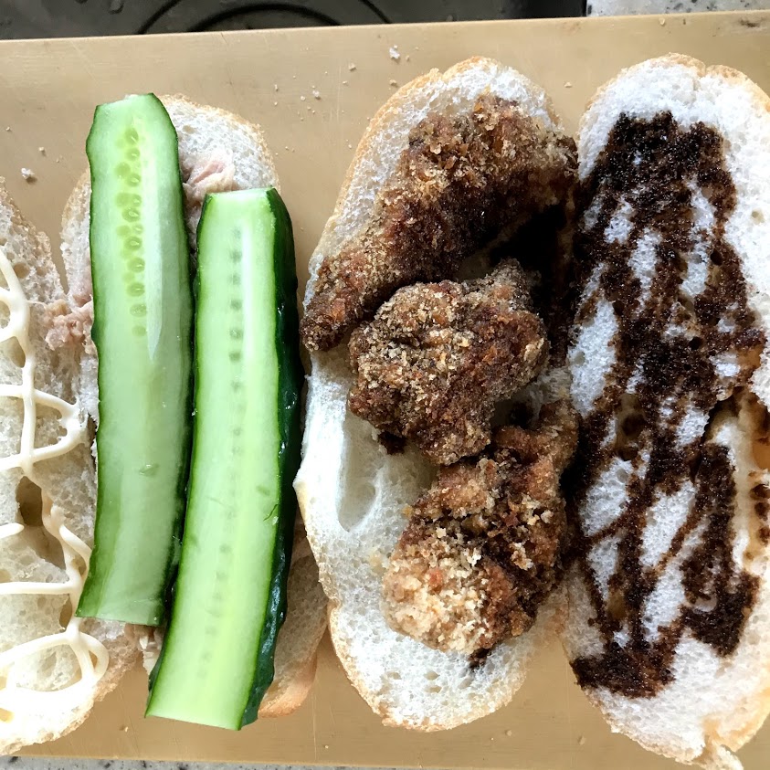 ドッグロールにスパイシーささみカツ、バルサミコ。