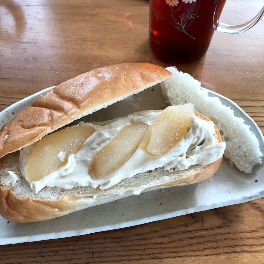 泡立て生クリームと紅玉ちゃん(大江のりんごシロップ煮)