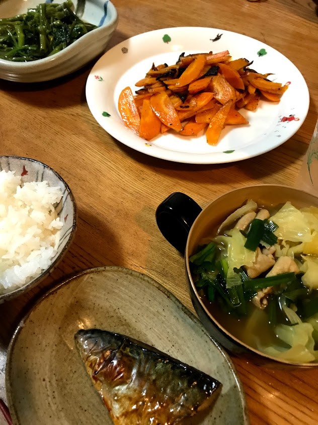 鯖みりん漬け、人参のマヨネーズ炒め。