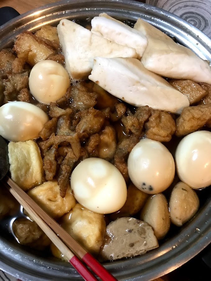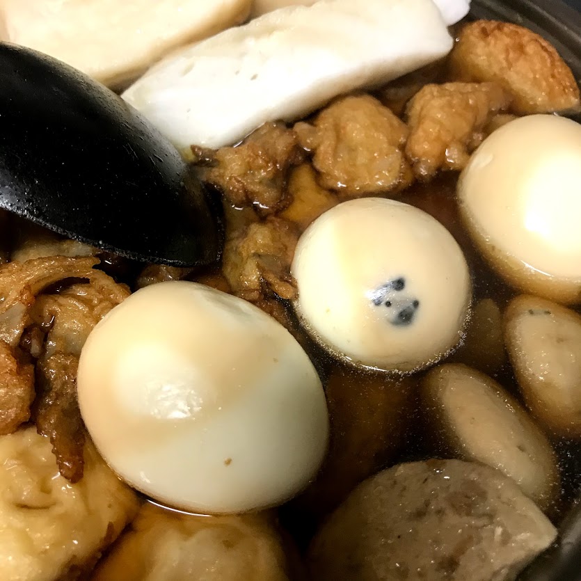 追加のはんぺん、れんこんちぎり揚げ、ささがきごぼう揚げ、おとうふ揚げ、大根、卵、横綱こんにゃく。