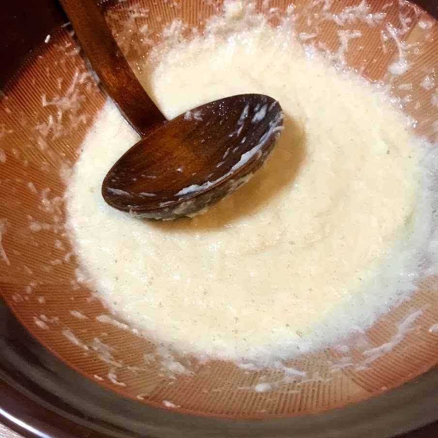水とほんの少しの白だしでゆるめてすりこ木ですりました。