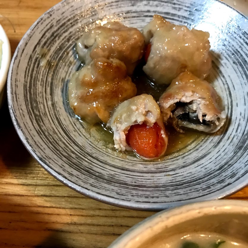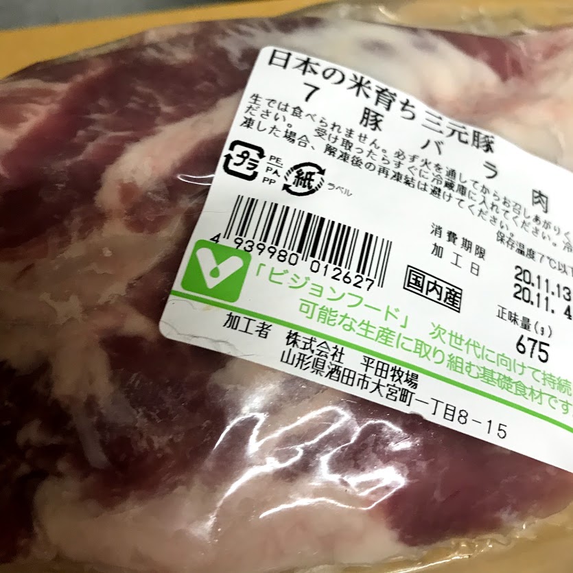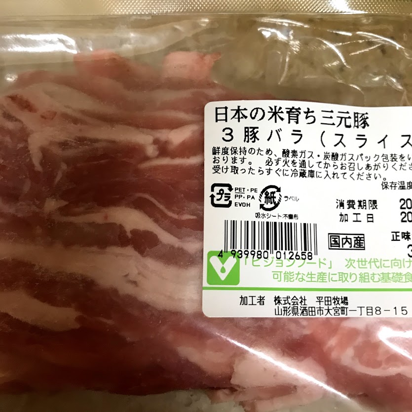 平牧豚バラスライスとキサイチの黒酢とりんご酢の調味酢で、
