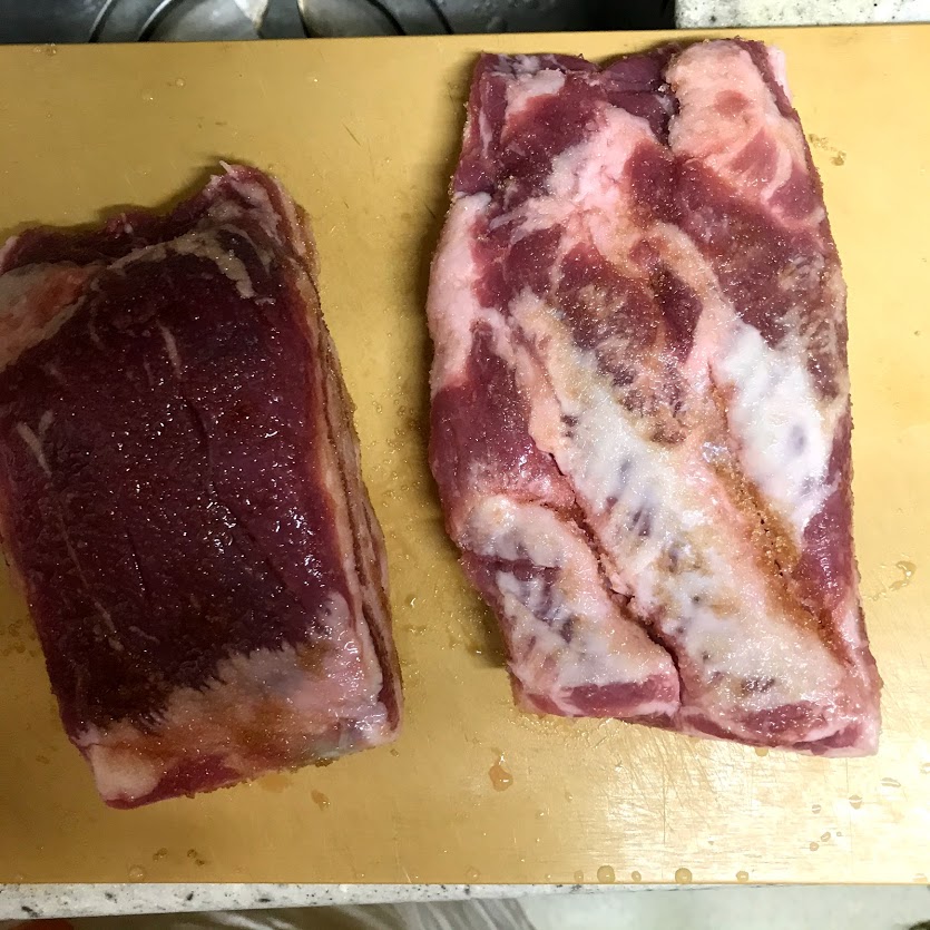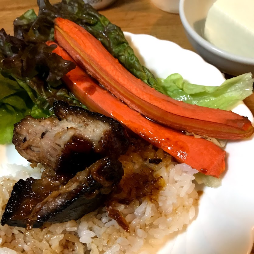 漬けこんたかたまり肉をオーブンでじっくり焼くと中はトロトロ〜。
