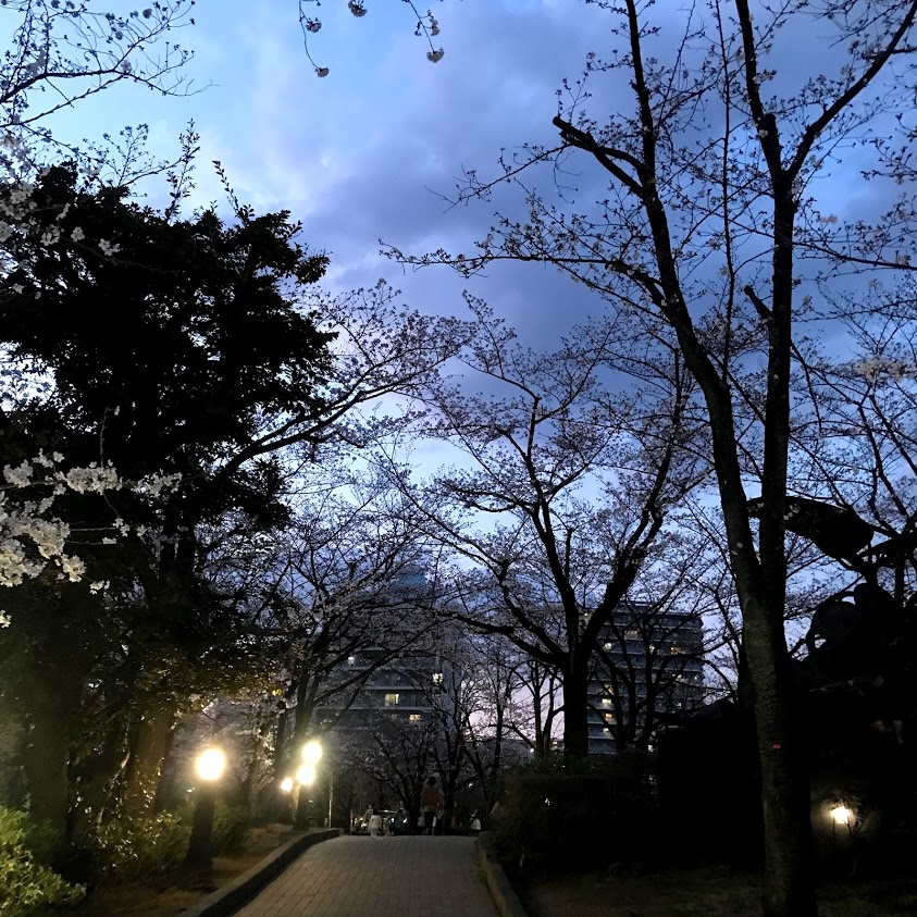 駅前の公園、桜が咲いて、いつもより人通りは多いですが、