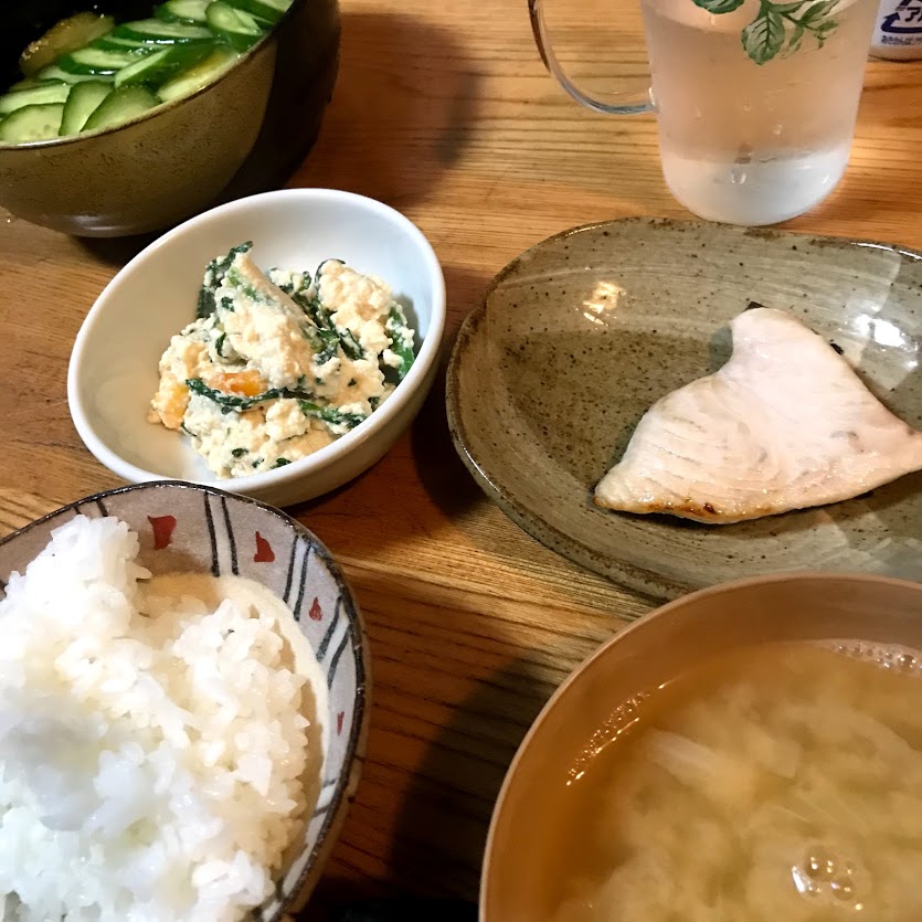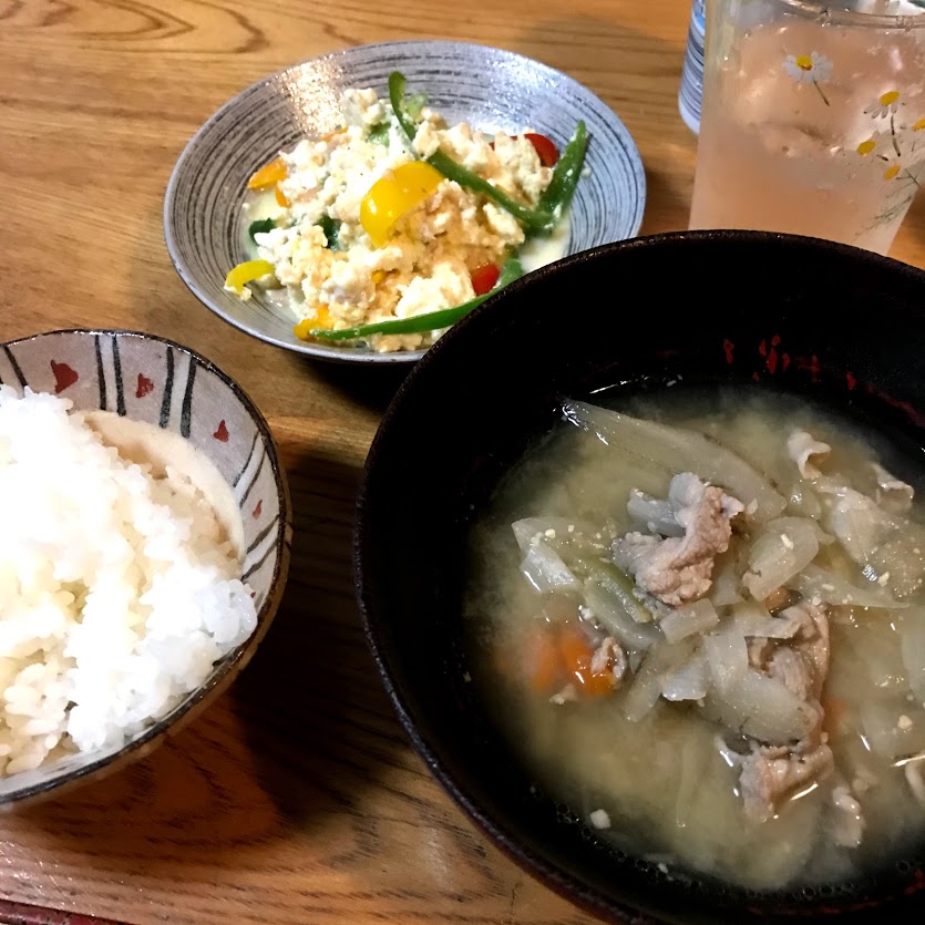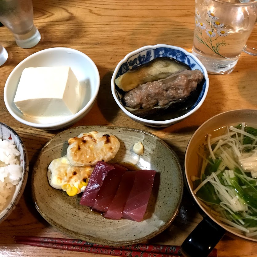 冷奴、はがれてしまったなすの肉はさみ煮、