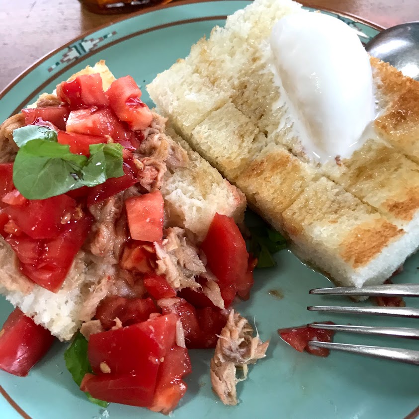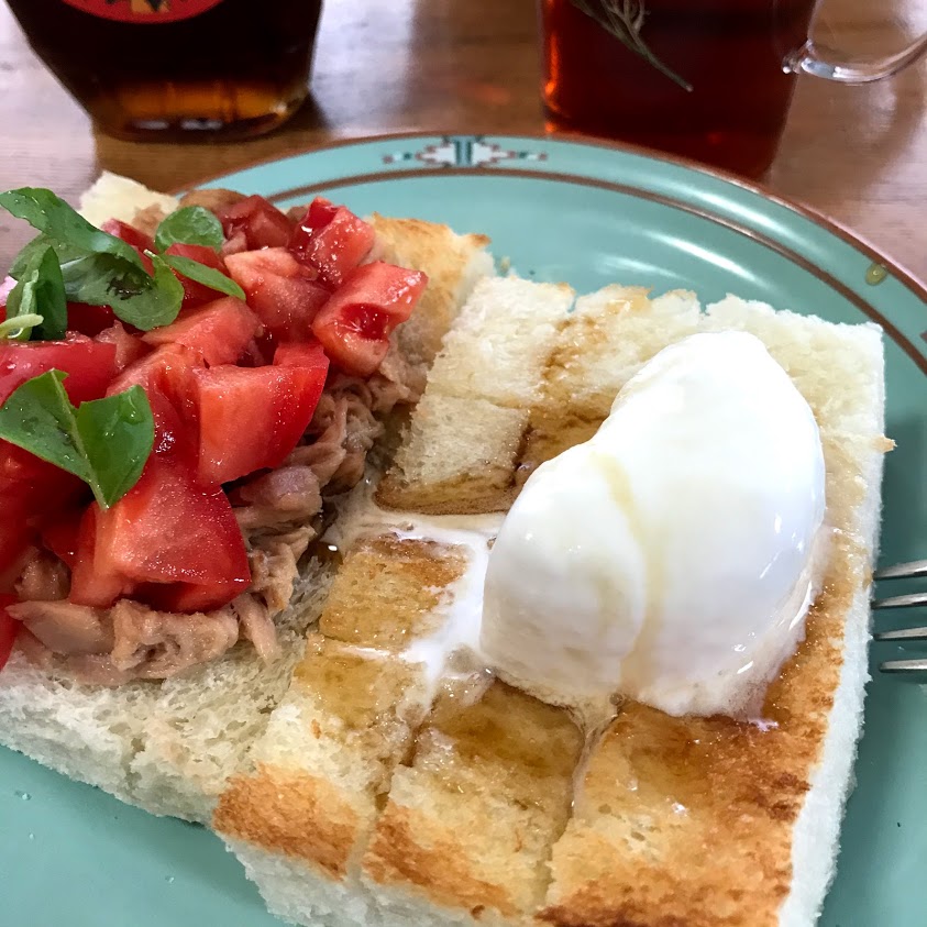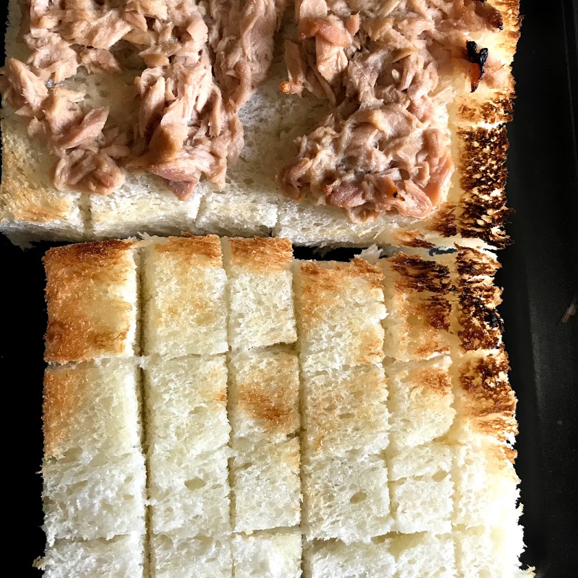 まぐろ油漬け缶と、バターを乗せてトースト。