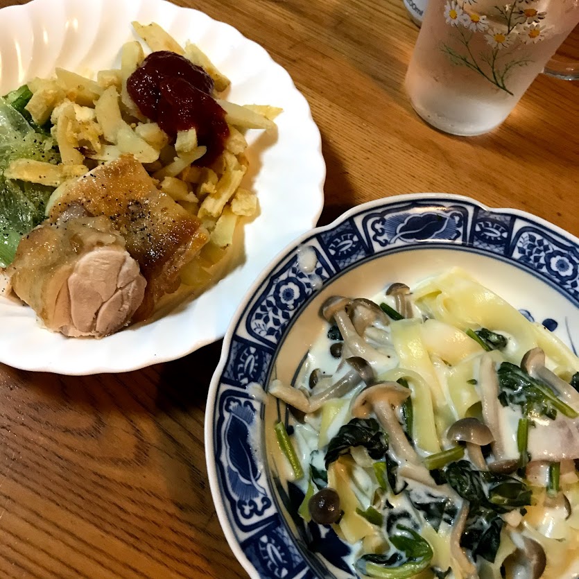 ベーコン、ほうれん草、ぶなしめじクリーム味。