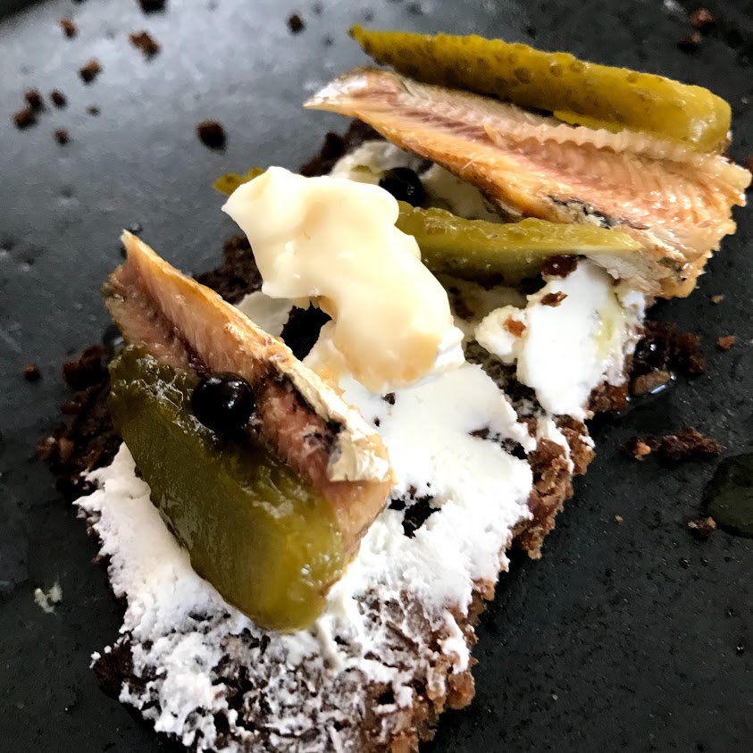 新生酪農のバター、いわしオイル漬け缶、ディルピクルス、クリームチーズ、カマンベールチーズ。