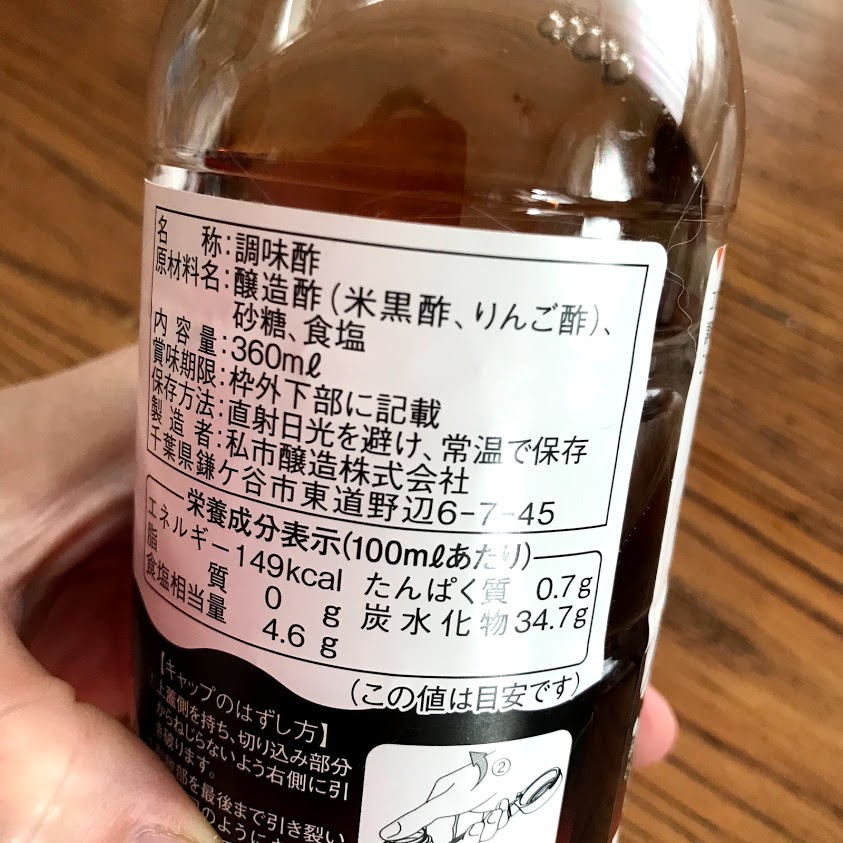 お酢のキサイチさんからいただいた献立応援酢シリーズの黒酢とりんご酢の調味酢。