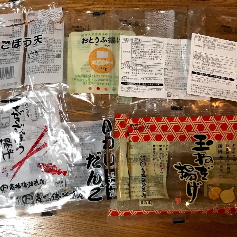 ごぼう揚げ以外は、高橋徳治商店スペシャルみたいになりました。