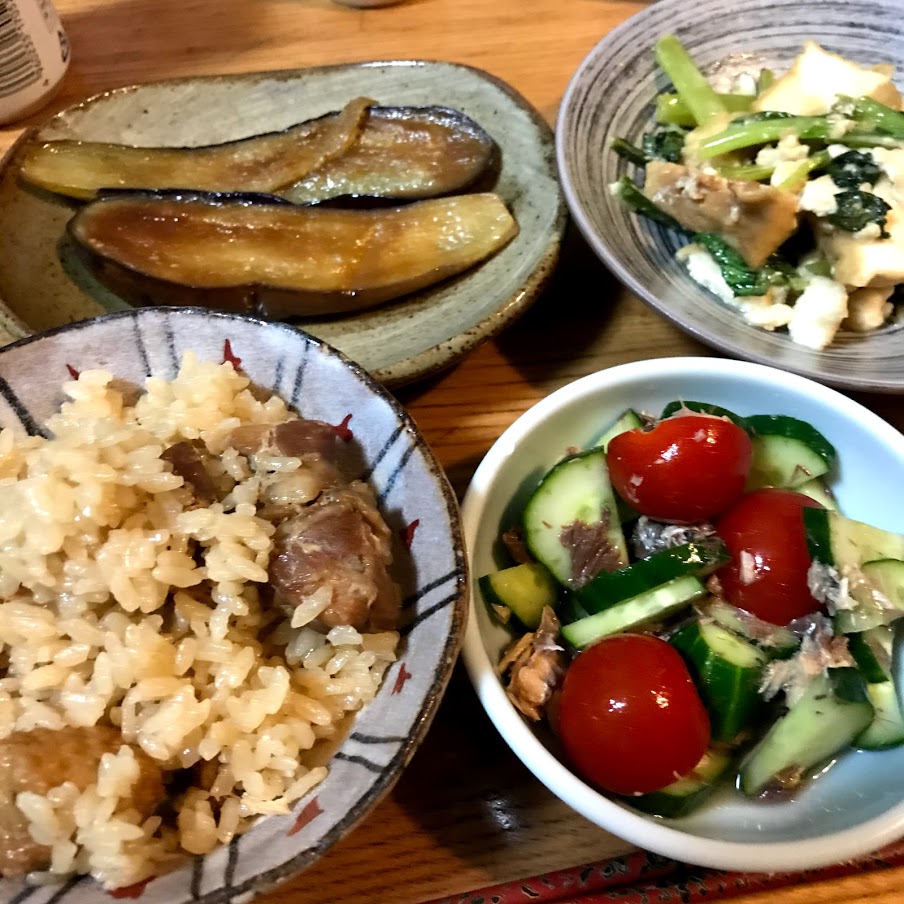 きゅうり、ミニトマト、さば缶のすし酢和え。