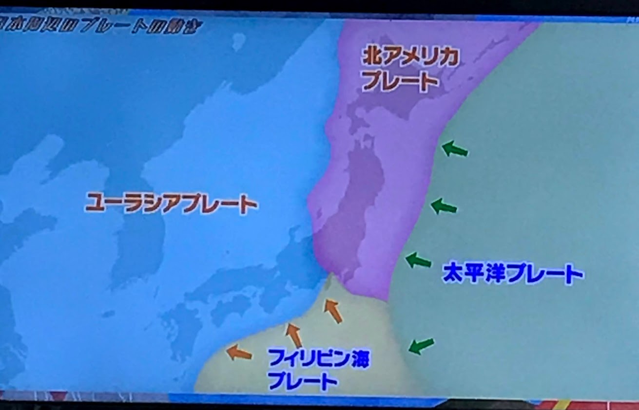 2つのプレートの下に太平洋プレートが沈み込んでいる。