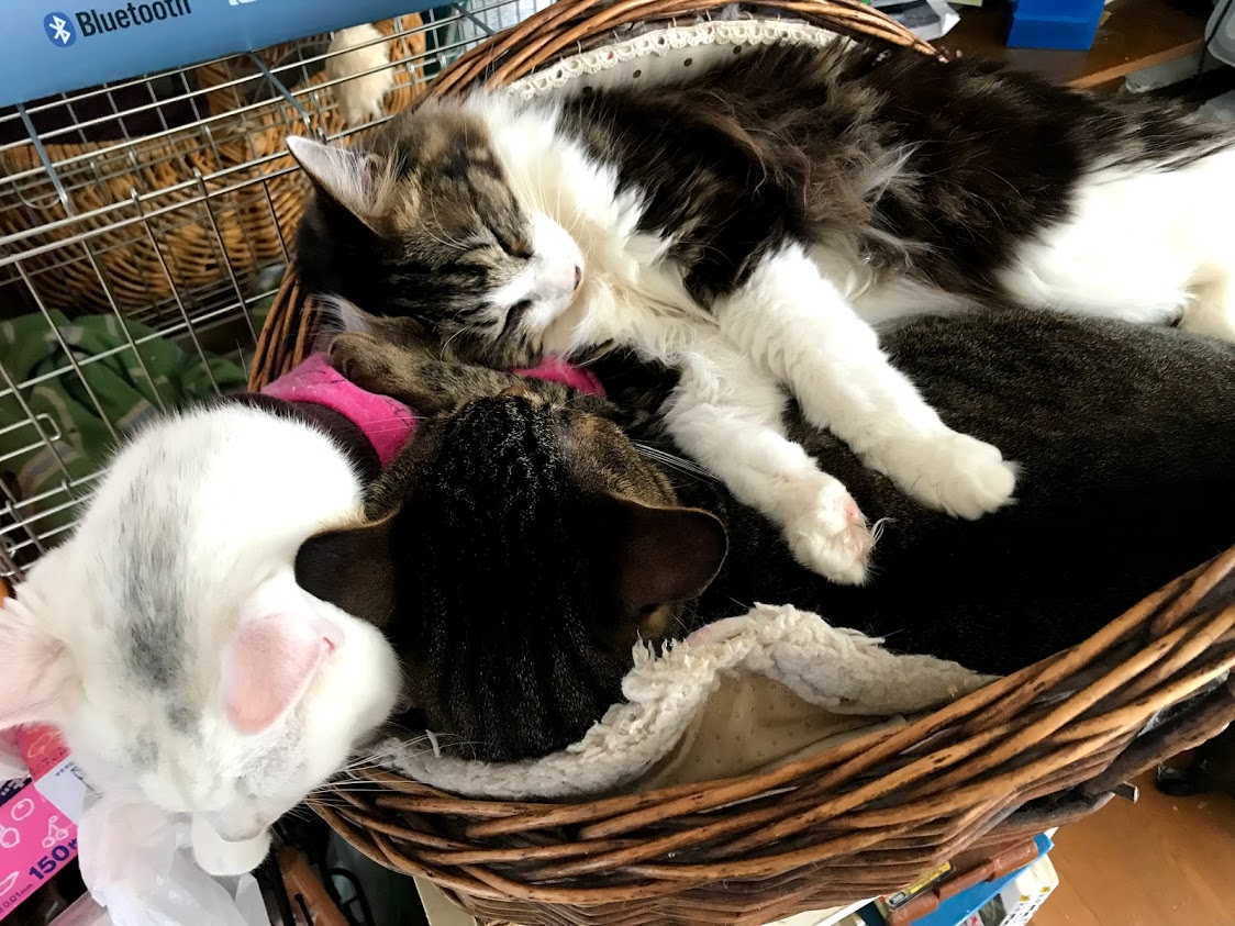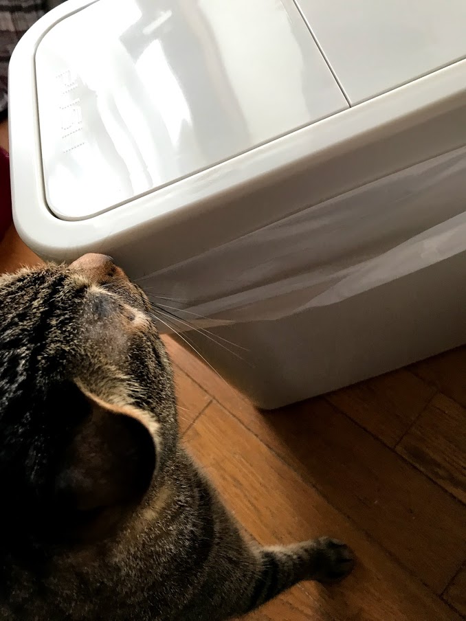 新しいものが出てくると、すぐに見にくる猫たち。
