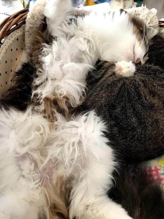 だいぶ切ったのでお腹の毛がすかすかになりました。