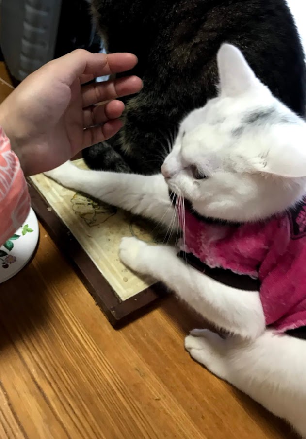 やっと少し元気が出てきて、テーブルの上にもあがっちゃうよ。
