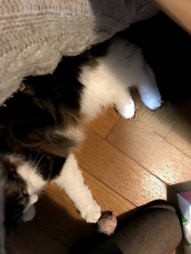 ガブは夜、寝るころになると ボールを足元にくわえて来ます。