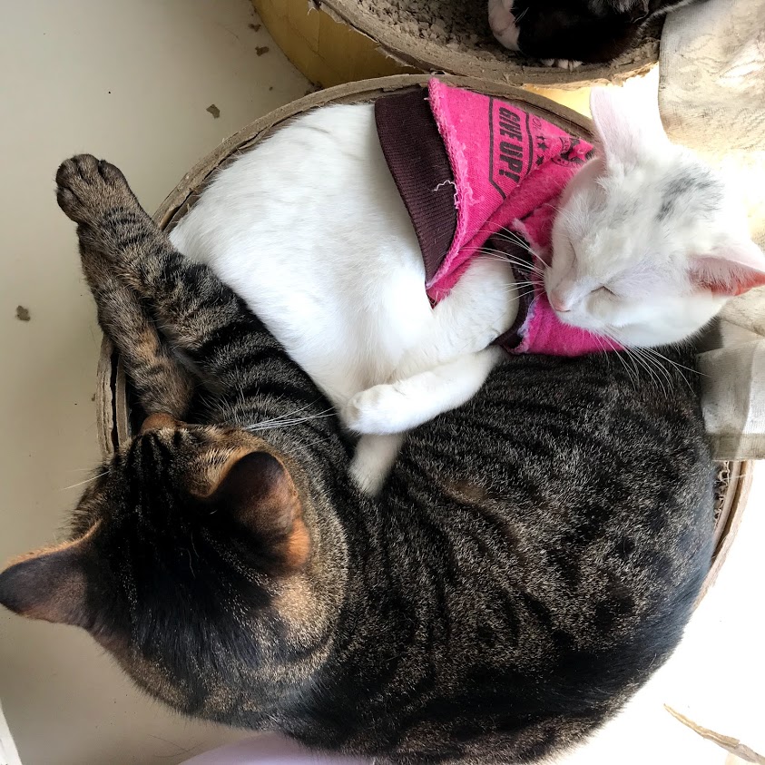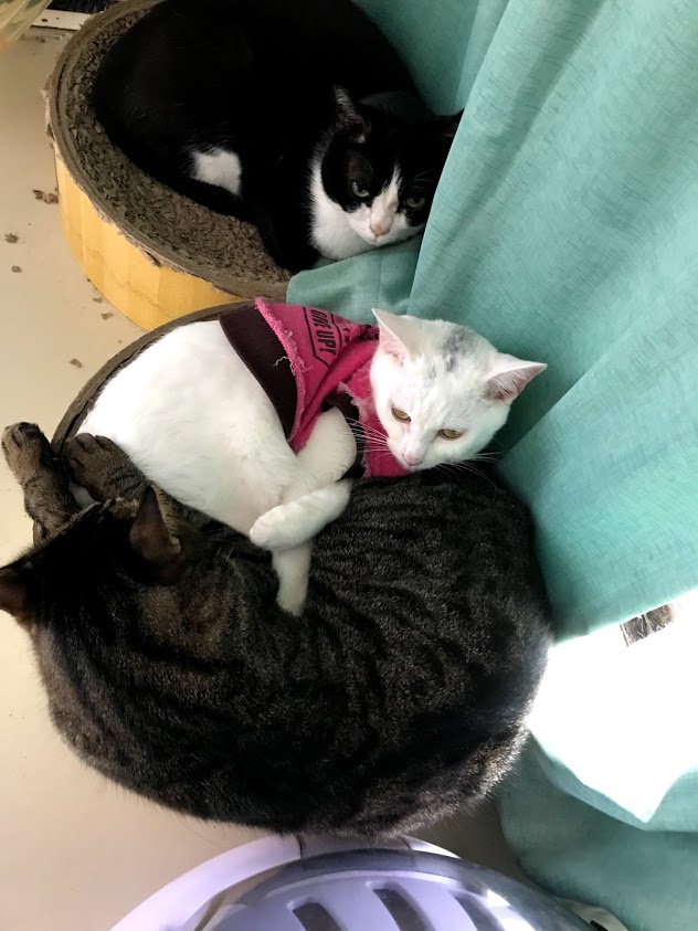 暖かくなると出窓は猫だらけ。