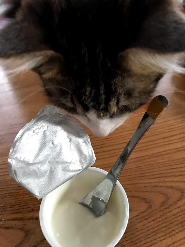 ヨーグルトを開けるとガブがやってくる。
