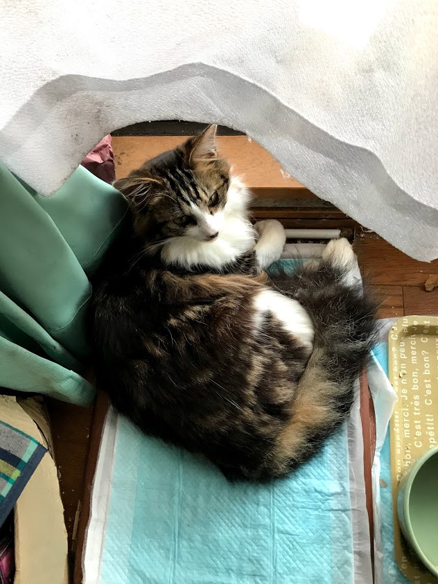 はなのトイレは、昼間はガブのベッドになっています。