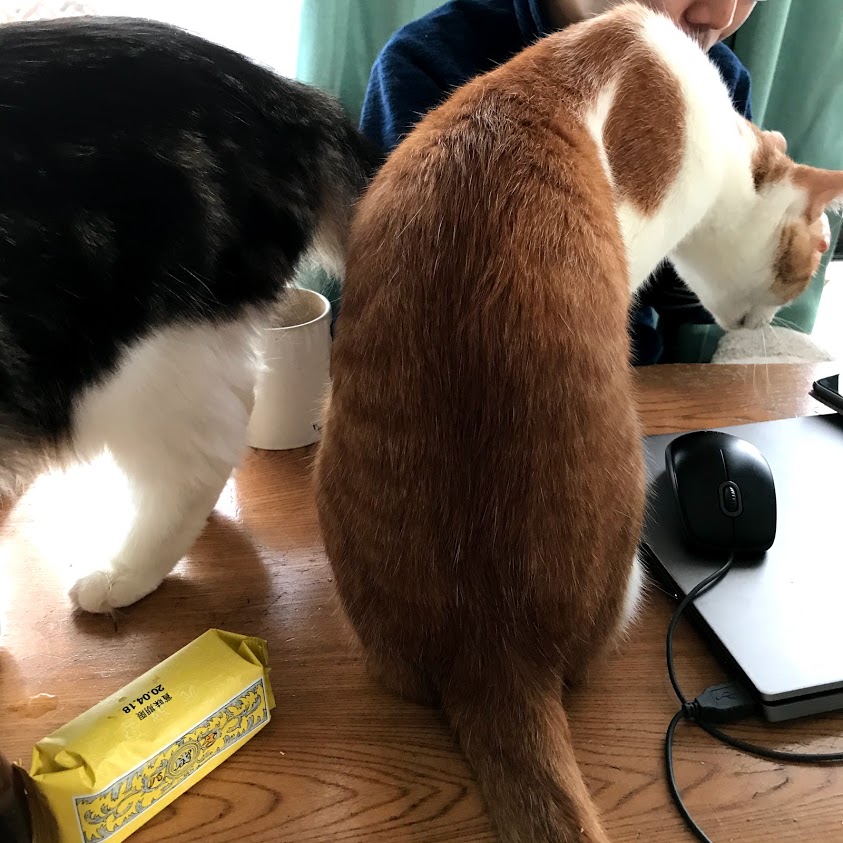 おやつを食べはじめたら猫が殺到。