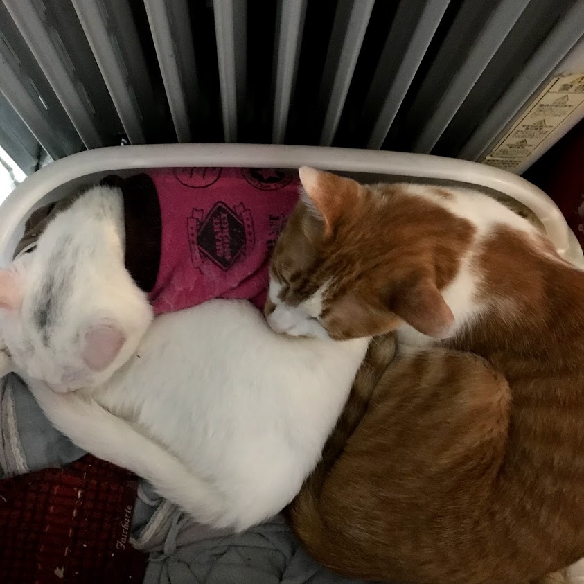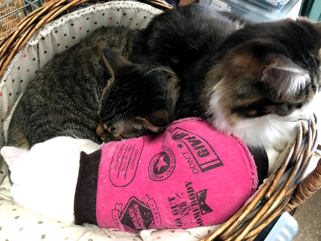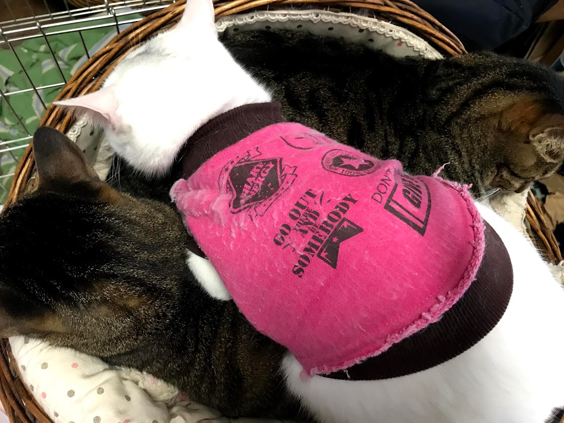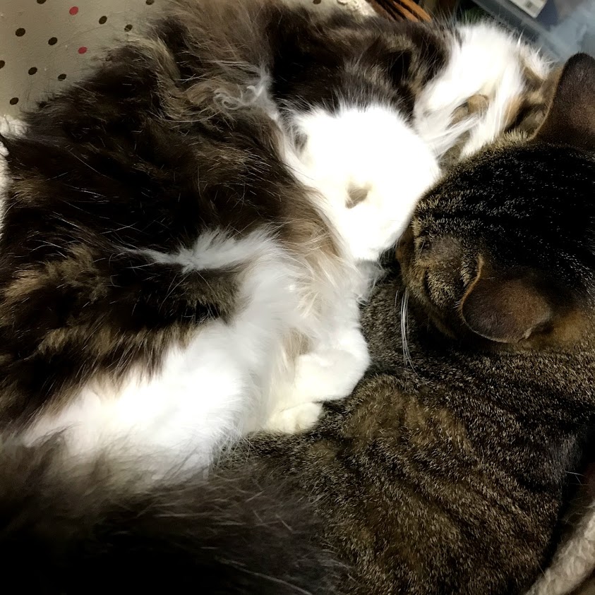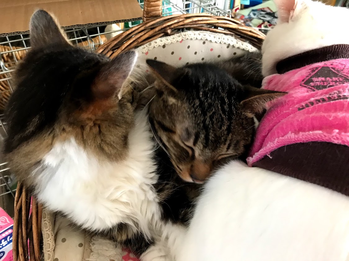 寒いので猫たちがくっつく。